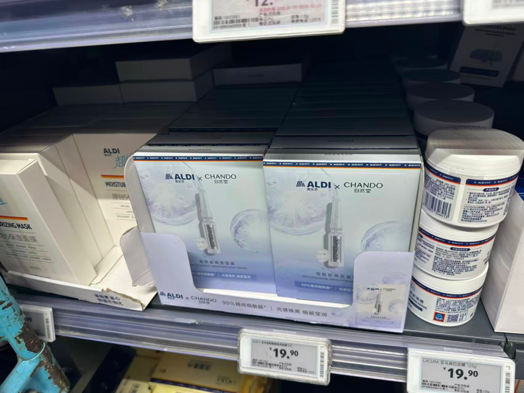 此外,《化妆品观察》还在门店看到,除了将部分自有品牌的备案/生产交给上海自然堂集团有限公司,奥乐齐还携手自然堂推出了联名面膜,显现出其对本土供应链的深度整合。