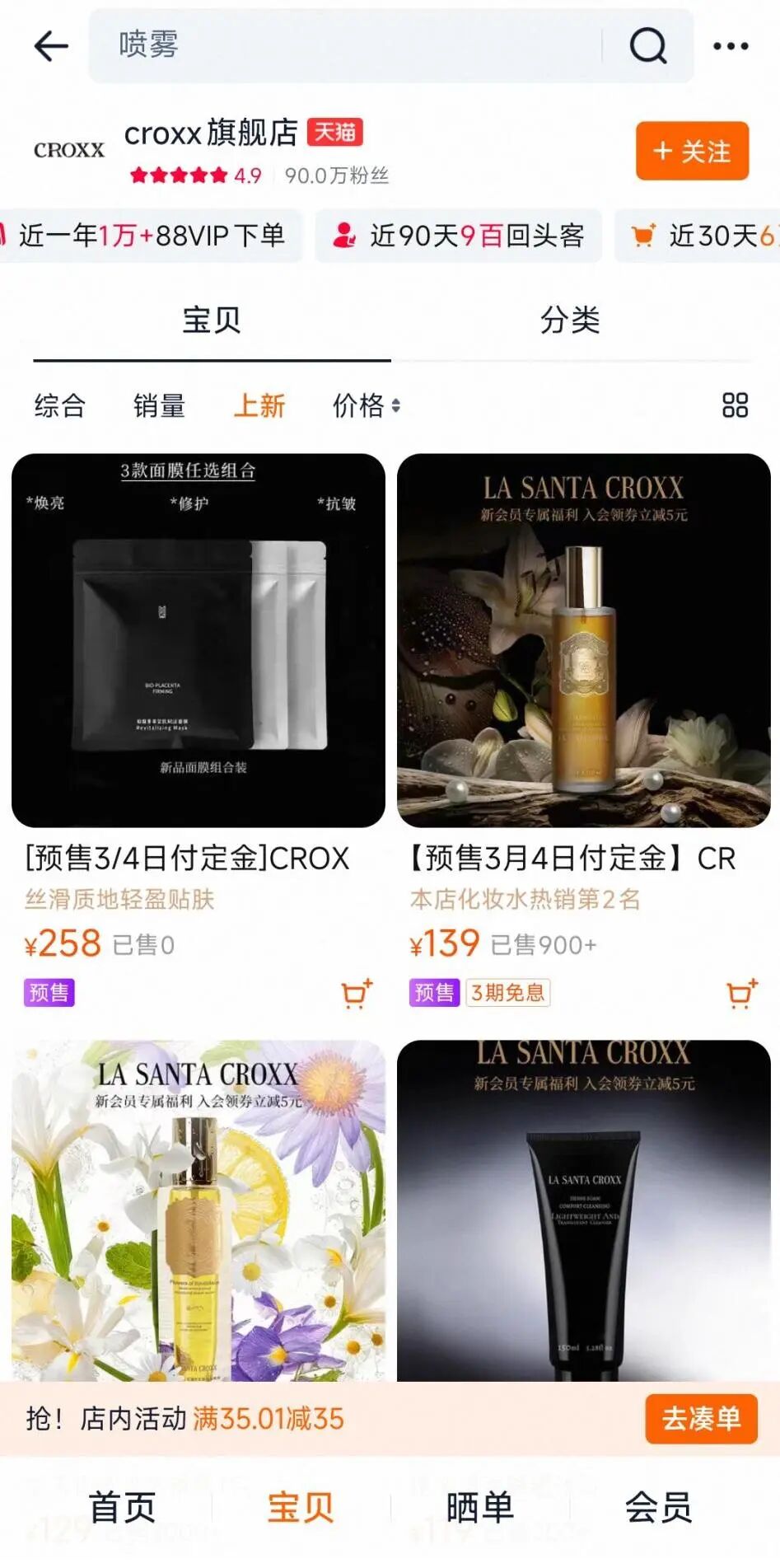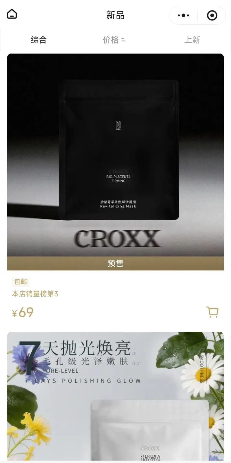 先看最新的动作。2025年12月,3款以“CROXX”为品牌名的面膜完成备案,目前正在CROXX天猫旗舰店、小程序渠道预售。这是CROXX关停4年后,首次以“本名”推出新品。