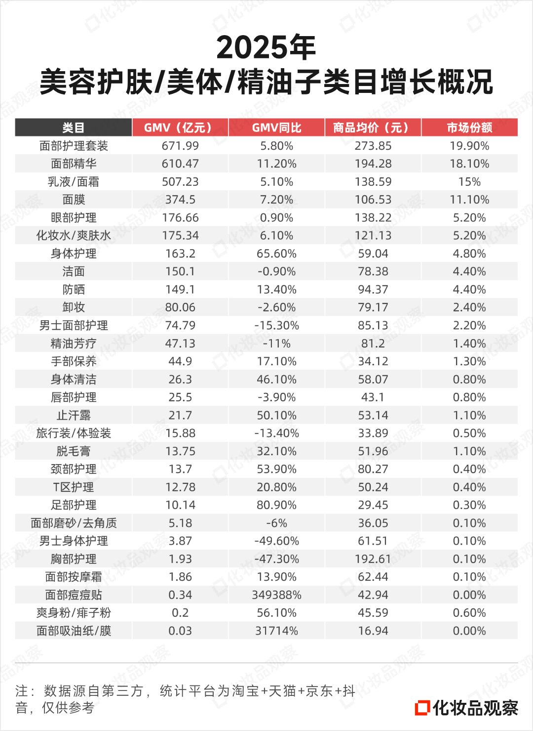 据第三方数据,2025年美妆在主流电商(淘宝+天猫+京东+抖音)卖了5439亿,同比增长8%。