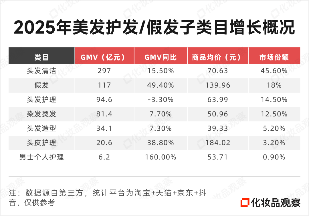 再看护发大盘:2025年,美发护发/假发GMV达646.35亿,同比增长16%。2026年1月同比增长32.3%至62.2亿元,势头强劲。