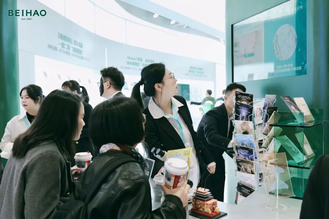 比如,在2026CiE美妆创新展的贝豪面膜科学馆内,就专门设置了“皮肤代谢诊断”互动区、纳米纤维超导膜使用效果呈现区两个特殊区域。其中,“皮肤代谢诊断”互动区可通过显微镜微观观察不同代谢力的皮肤特征,还能让观众在现场体验纳米纤维超导膜,测测自己的脸有多“脏”;纳米纤维超导膜使用效果呈现区则展示了40位消费者使用后的干膜纸,将物理卸老废角质、动态紧塑效果可视化。