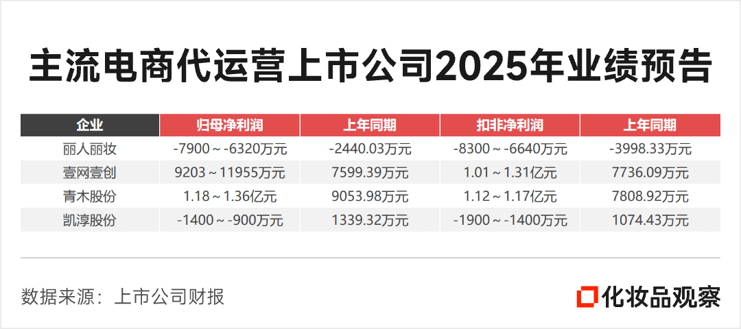 以2025年举例来看,在美妆代运营这一核心赛道上,各上市公司的业绩呈现出“冰火两重天”的景象: