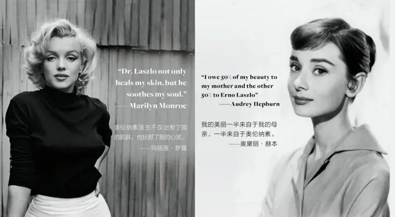 比如,作为玛丽莲梦露生前唯一代言的护肤品牌,她曾经评价:“奥伦纳素不仅治愈了我的肌肤,也治愈了我的心灵。”奥黛丽·赫本则留下经典名言:“我的美丽一半来自于我的母亲,一半来自于奥伦纳素。”