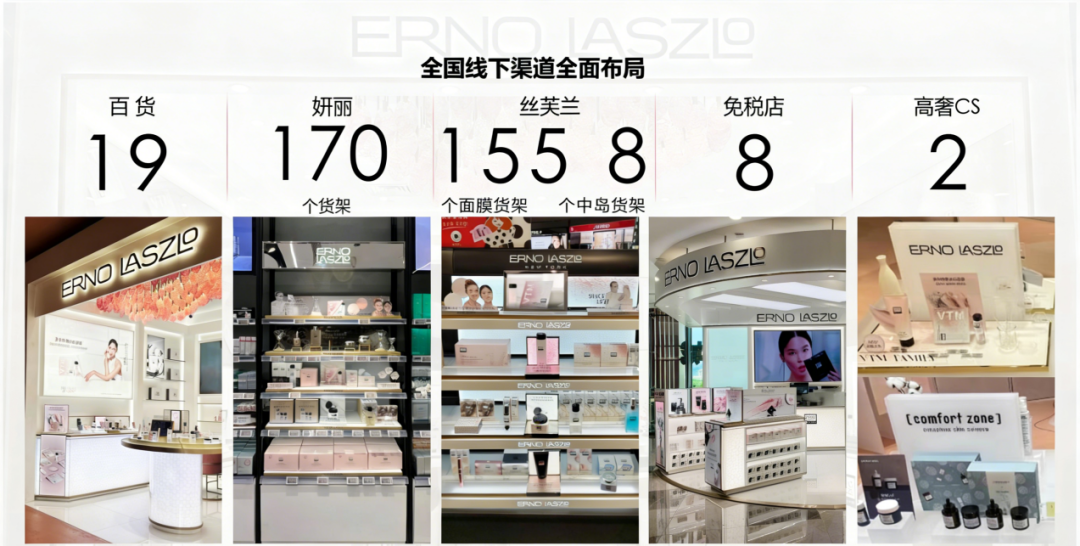 线下,奥伦纳素成功进驻全国19家一、二线城市的高端百货精品店(如上海久光、北京SKP),以及丝芙兰、妍丽等严选型高端美妆集合店。