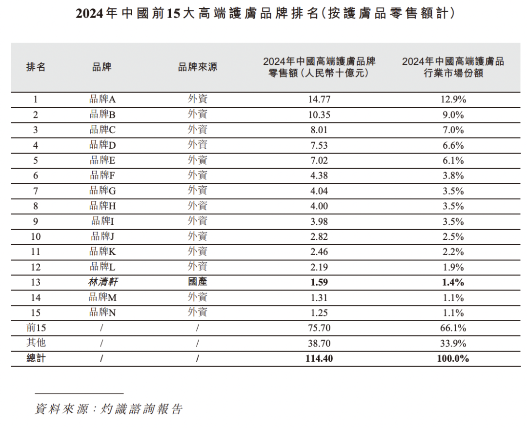 而从市场格局来看,高端护肤市场主要由国际品牌主导。在2024年中国高端护肤品牌TOP15榜单中,国货品牌仅占一席(第13名),其中TOP3品牌合计占据28.9%市场份额,前十品牌市场份额合计近六成。