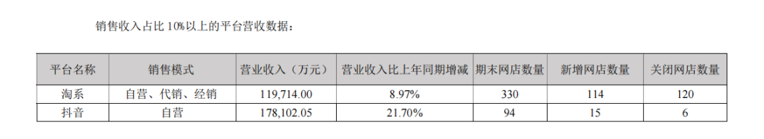 在销售收入占比超过10%的两大平台中:淘系(天猫+淘宝)全年营收11.97亿元,同比增长8.97%;抖音自营营收则高达17.81亿元,同比激增21.70%。显然,水羊股份在抖音这一内容驱动的兴趣电商平台上,已构建起强大的流量获取与转化能力。