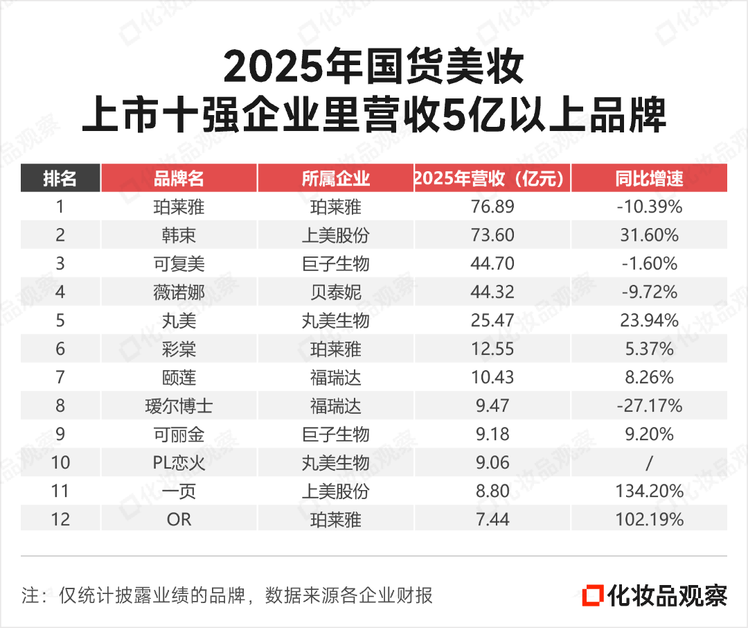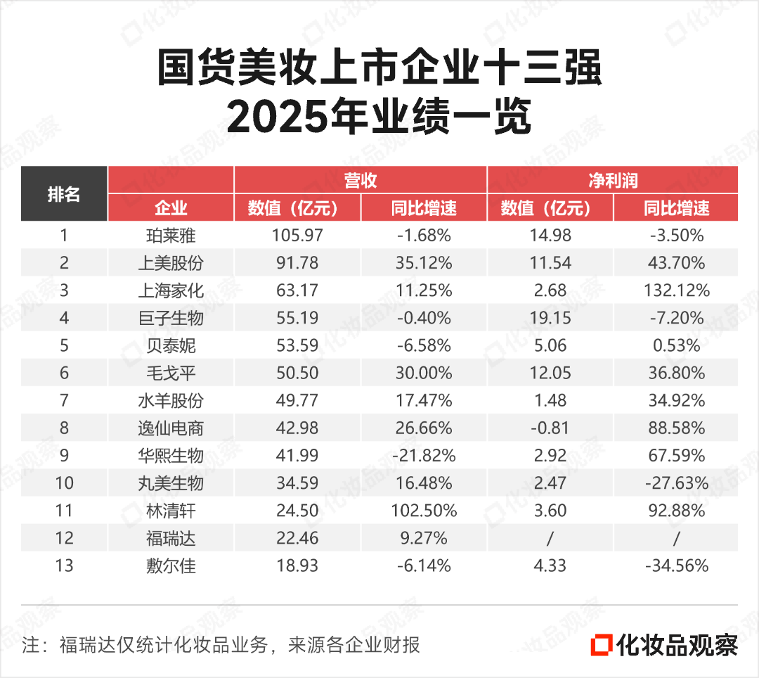 国货美妆上市企业,目前已全部披露2025年业绩。